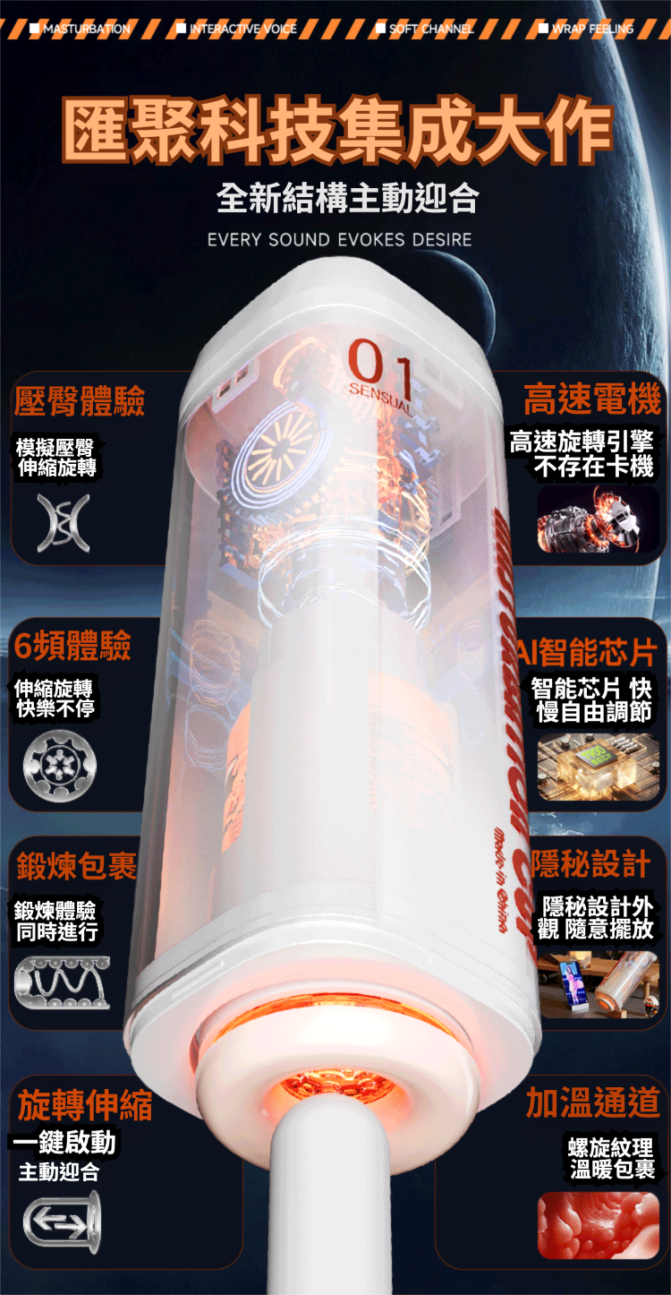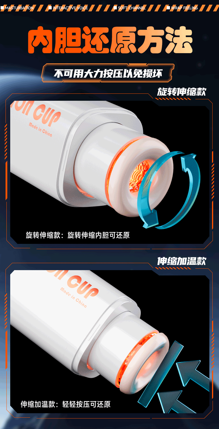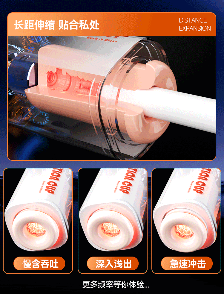智能伸縮旋轉:吸力模式6種,推動旋轉模式6種,高速伸縮,雙向旋轉,直達雲霄。