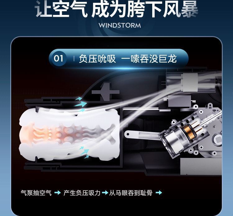 負壓吮吸 氣泵抽空氣 → 產生負壓吸力→從馬眼吞到恥骨